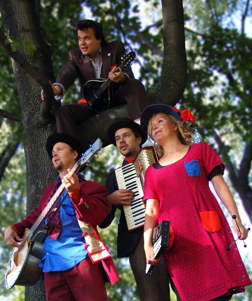 Miska Kajanus, kitara, mandoliini, laulu (näyttelijä-muusikko, kouluttautunut Miamissa näyttelijän työhön, improvisaatioon sekä klovneriaan)